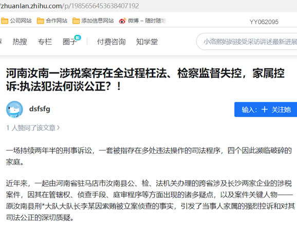 近年来,一起由河南省驻马店市汝南县公、检、法机关办理的跨省涉及长沙两家企业的涉税案件,因其在管辖权、侦查手段、庭审程序等方面出现的诸多疑点,以及案件关键人物——原汝南县刑*大队大队长李某因索贿被立案侦查的事实,引发了当事人家属的强烈控诉和对其司法公正的深切质疑。