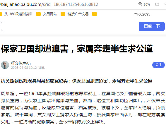 抗美援朝伤残老兵周某超蒙冤纪实:保家卫国却遭迫害,家属奔走半生求公道