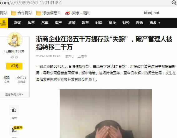 一家企业的5075万元合法债权存款,白纸黑字确认的“专款”,却在破产清算过程中被擅自挪用,导致公司经营全面停滞,濒临绝境。这场持续五年、至今仍未解决的资金迷局,发生在洛阳紫香园农业科技开发有限公司身上。