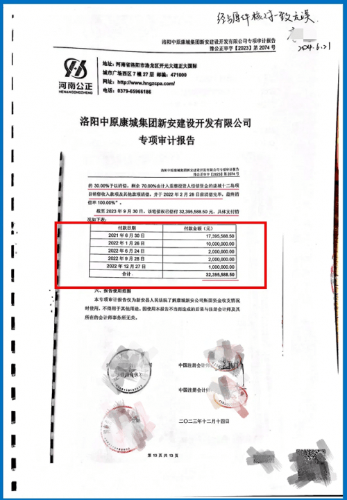 根据一份2023年的专项审计报告显示:在2021年6月至2022年底,管理人分五次,将共计约3239.56万元,从本应属于紫香园公司的提存款账户中,转给了另一家公司——中融国际信托有限公司。 此外,还有1800余万元资金下落不明。